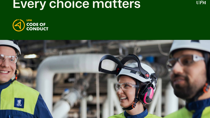 Misconduct is behavior that is not in line with the UPM way of doing business, i.e. violations of the UPM Code of Conduct, UPM Supplier and Third-Party Code, corporate policies or applicable laws.